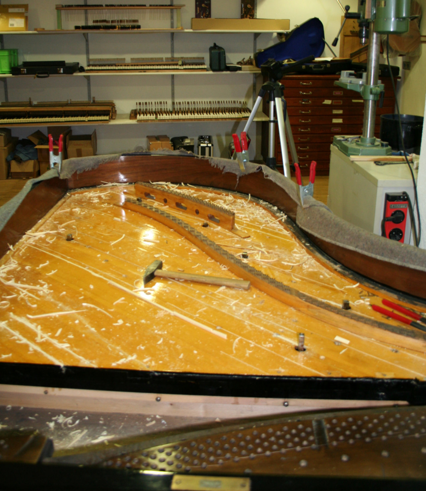 Generalreparaturen oder Restaurationen , an Klavieren oder Flügeln fordern zum einen handwerkliches Können und zum anderen umfangreiches Fachwissen, um die Konstruktionen der zum Teil sehr alten Instrumente verstehen zu können. Vor 100 Jahren waren die Klaviere und Flügel sehr unterschiedlich gebaut worden und hatten daher auch sehr unterschiedliche Klangcharaktere. Jedes Instrument wird von uns vor der Reparatur genauestens analysiert und dann im Sinne des Konstrukteurs der jeweiligen Fabrikate repariert. So werden sämtliche negativen Veränderungen, die im Laufe der Jahre am Instrument entstanden sind, wieder rückgängig gemacht und der ursrüngliche individuelle Charakter wieder hergestellt.